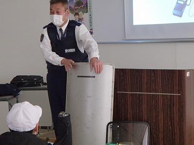 昼放課、地震の訓練報が流れると、児童自身で安全な場所をみつけ、身を守る「姿勢を低く」「頭を守る」の安全行動ができました。