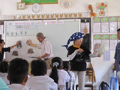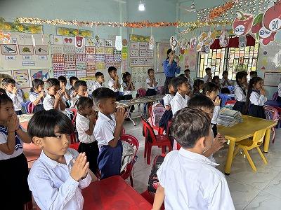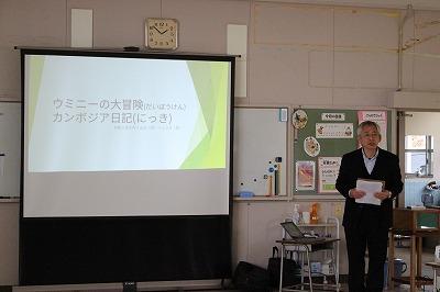 1月26日(月) 5年生の皆さんが作成した絵本「ウミニーの大冒険」を紹介するため、昨年8月、校長先生がカンボジアの小中学校を訪問しました。その時の様子を聞きました。