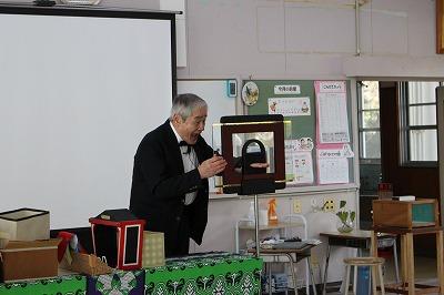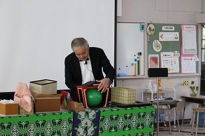 カンボジアの学校を訪問したとき、マジックショーも紹介したそうで、若戸小でも実際にマジックショーを見せていただきました。