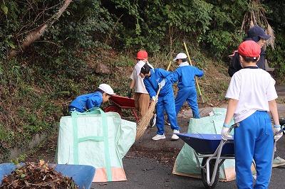 5年生は、小山に繁殖した竹をトラックまで運んだり、山道の側溝をきれいにしたりしました。