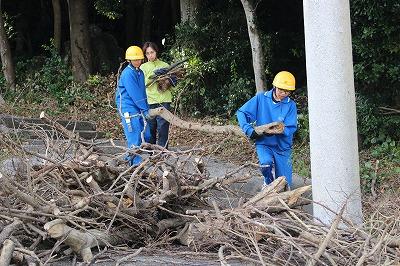 PTAの方々・地域の方々が枯れ木を切って運びやすくしてくれたので、みんなで協力して片付けることができました。
