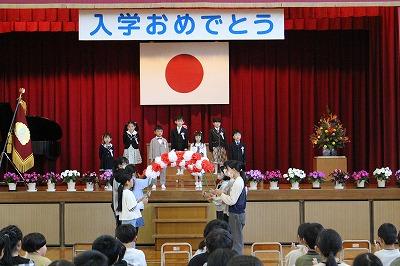 校長先生の式辞のあと、代表児童が歓迎の言葉を伝え、全員で校歌を歌いました。