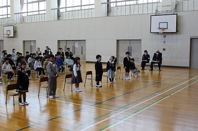 新入生の子どもたちは、名前を呼ばれると、元気よく返事をして立ちます。