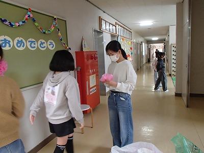 4月7日(火)、4〜6年生が登校して入学式の準備をしました。