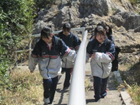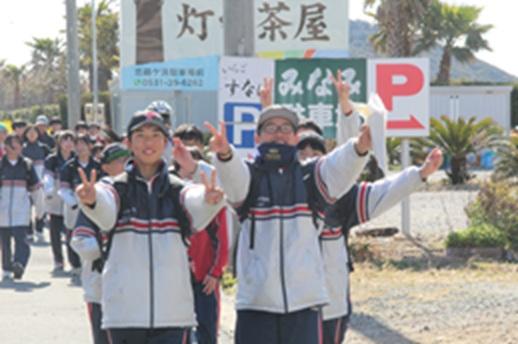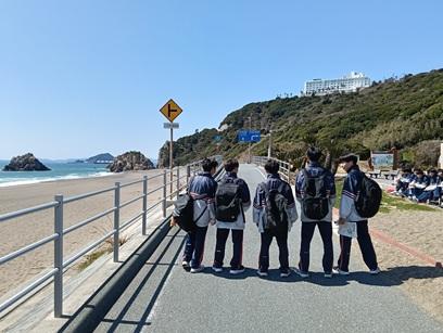 3月12日(木)今日は立志歩行です。とても良い天気、風もなく、絶好の歩行日和になりました。お昼は、地元、伊良湖の食堂のご協力を得て、温かい美味しい食事をいただきました。約26kmを頑張って歩きました。体育館に「負けないで」の曲が流れる中、最後の一人まで歩き抜きました。よい一日でしたね。