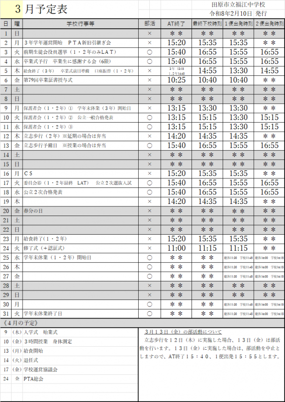 3月の予定をお知らせします(2月10日)