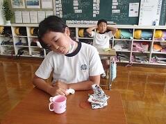 5年生の図工です。「コロがるくんの旅」ということで、教材を工夫してビー玉がころがっていく工作をつくっていました。