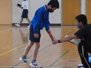 5年生の体育では、体力テスト「握力」と並行して「演舞」の練習をしていました。