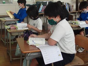↓教科書に出てくるわからない言葉を伝え、みんなで調べていました。