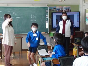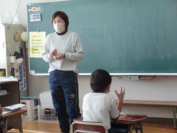 1年生は英語の時間でした。英語の音楽に合わせてゲームをしていました。