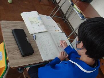 5年生の算数では、テキスト問題をすすめています。