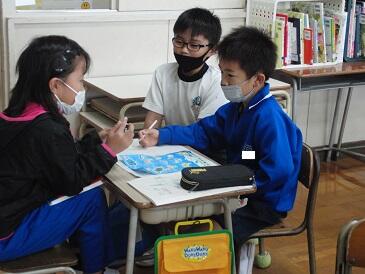友だちの意見を聞いて考えを深めます。