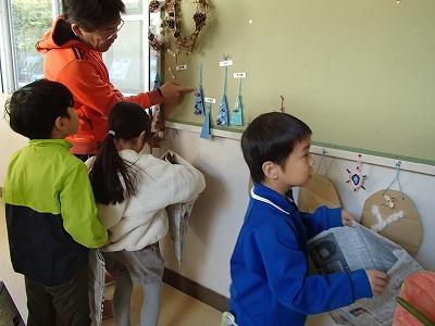 1年生は学期末ということで、図工や生活の時間に作った作品の片付けをしていました。