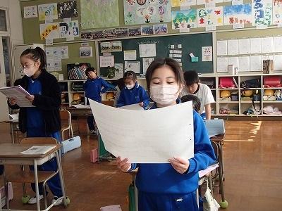 6年生は3月に行う書道パフォーマンスについて話し合いをしていました。