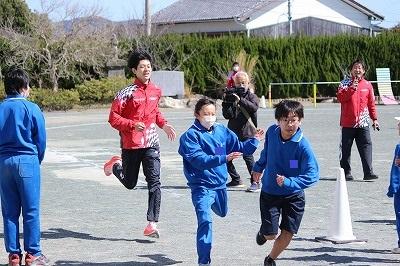 ニューイヤー駅伝の優勝チームの監督、コーチとトップアスリート選手3名より子どもたちに走る楽しさを体感しました。
