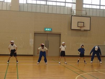 高学年は、本番で行う準備体操の隊形や、やり方を覚えました。